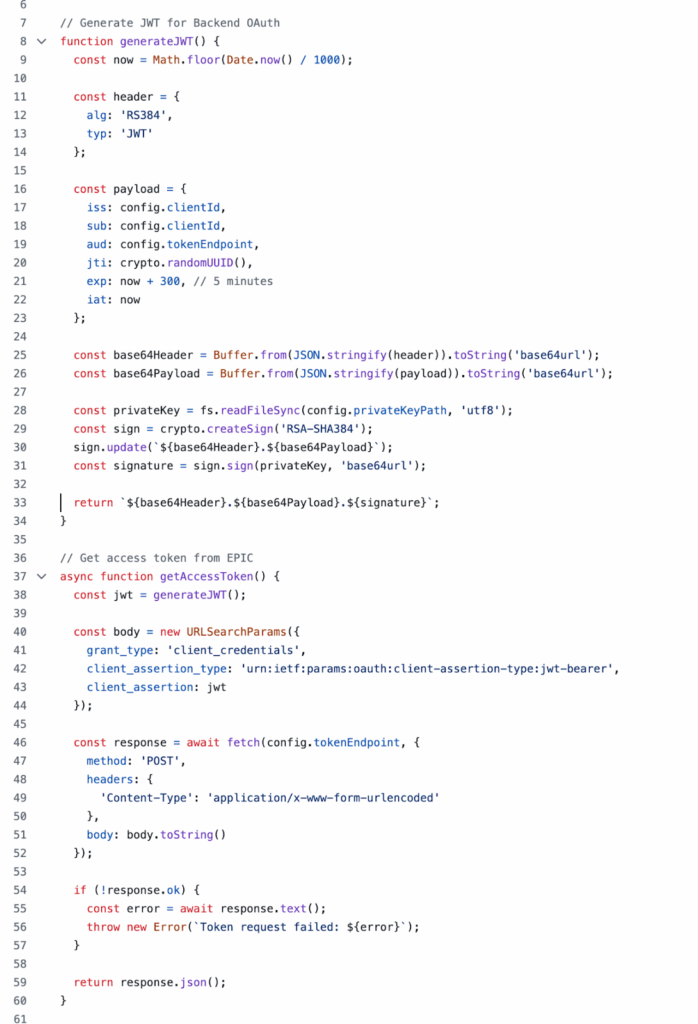 All the code for getting a token and looking up a patient is here: https://github.com/chadstachowicz/epic_intro/blob/main/server.js